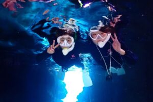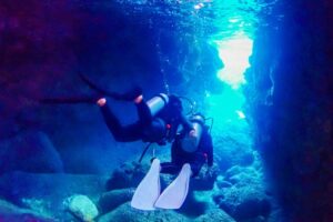 透過一對一的方式,您可以享受高度的無重力潛水,體驗洞穴探險潛水。在洞穴內,您將與各種色彩繽紛的魚群共舞,感到興奮不已,一直向深處前進,心臟不斷跳動,最後被深處的藍光所迷住,這將是一個令人激動連連的體驗。