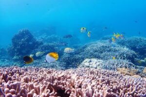 您可以盡情享受兩個極力推薦的潛點。在比查斯,您可以遇見美麗的珊瑚原始風景。請享受那些已經從冠星珊瑚的損害和白化中恢復健康的景象。此外,在藍洞,小魚群會迎接您,讓您被神秘的光線所包圍。